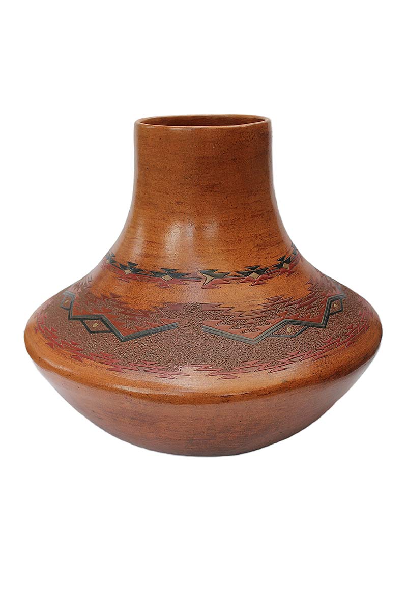Lorraine Yazzie Williams, Diné, Navajo Nation, was born in Arizona during the late 1950s and was raised in Sweetwater, Arizona, near Kayenta and Teec Nos Pos, in the Four Corners region. She was not raised with exposure to the tradition of pottery making and did not begin working with clay until 1980.